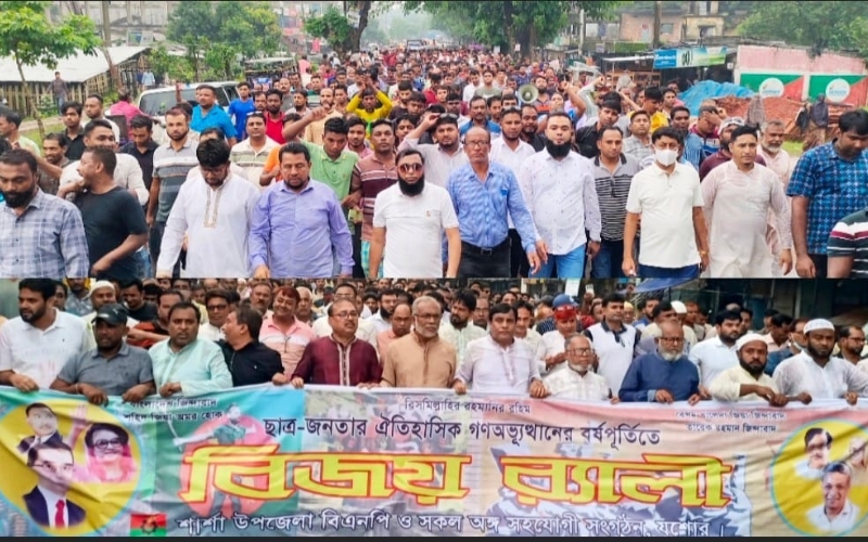 ছাত্র জনতার ঐতিহাসিক গণঅভ্যুত্থান দিবসের বর্ষপূর্তি উপলক্ষে শার্শা উপজেলা বিএনপি ও এর অঙ্গ ও সহযোগী সংগঠনগুলোর উদ্যোগে এক বর্ণাঢ্য বিজয় র্যালি অনুষ্ঠিত হয়েছে।